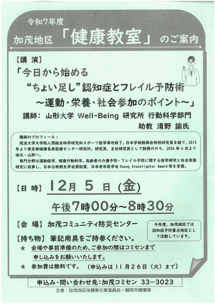 令和7年度 加茂地区「健康教室」のお知らせです。